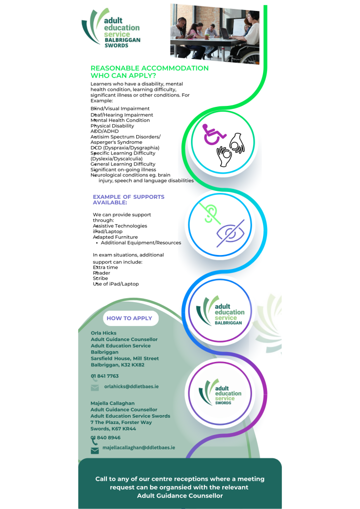 Adult Education Service Balbriggan and Swords can provide supports to individuals with a range of learning needs.